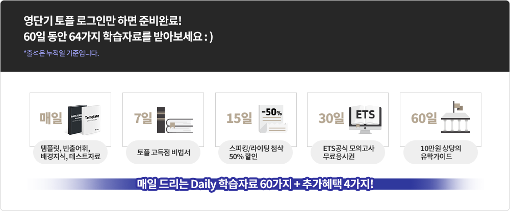 그 결과, 영단기 토플만큼 선생님 강의력이나 관리 시스템이 좋은 곳이 없다고 판단이 되어 영단기 토플에서 공부를 시작했습니다.